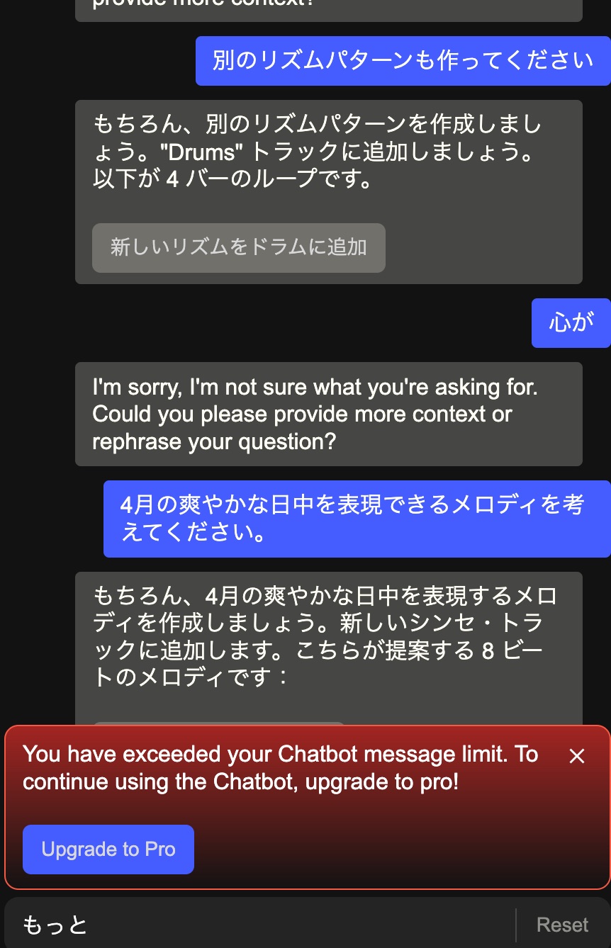 メロディの指示出しも細かくスケールやリズムパターンをきっちり決めて指示を出さないとだめなようですね。