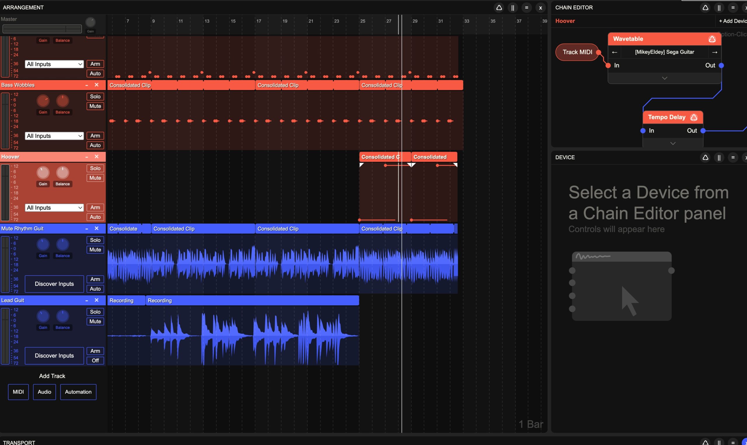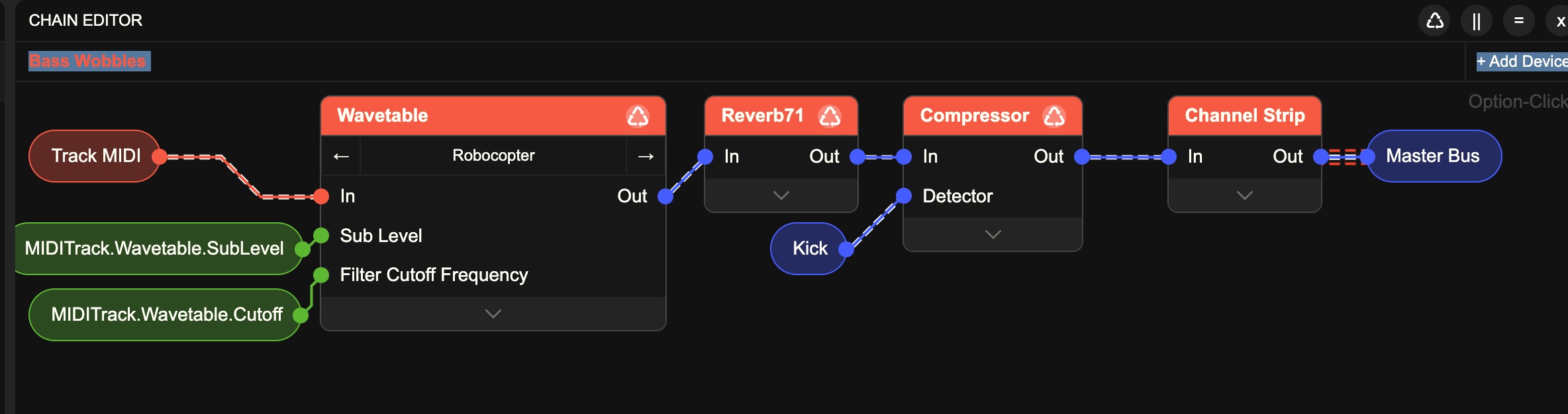 エフェクトチェーンはグラフを繋いでいくプログラミング手法で視覚的に把握できるのはBitwigっぽいですね。