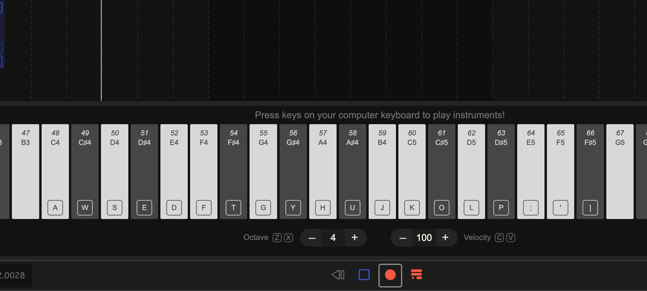 MIDIキーボードの他、パソコンのキーボード入力でメロディを入れることができます。