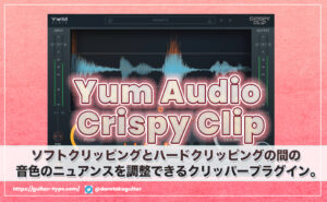 「Yum Audio Crispy Clip」ソフトクリッピングとハードクリッピングの間の音色のニュアンスを調整できるクリッパープラグイン。