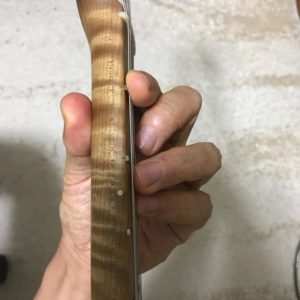 親指はネックを半分にしたときの中間点あたりで固定します。