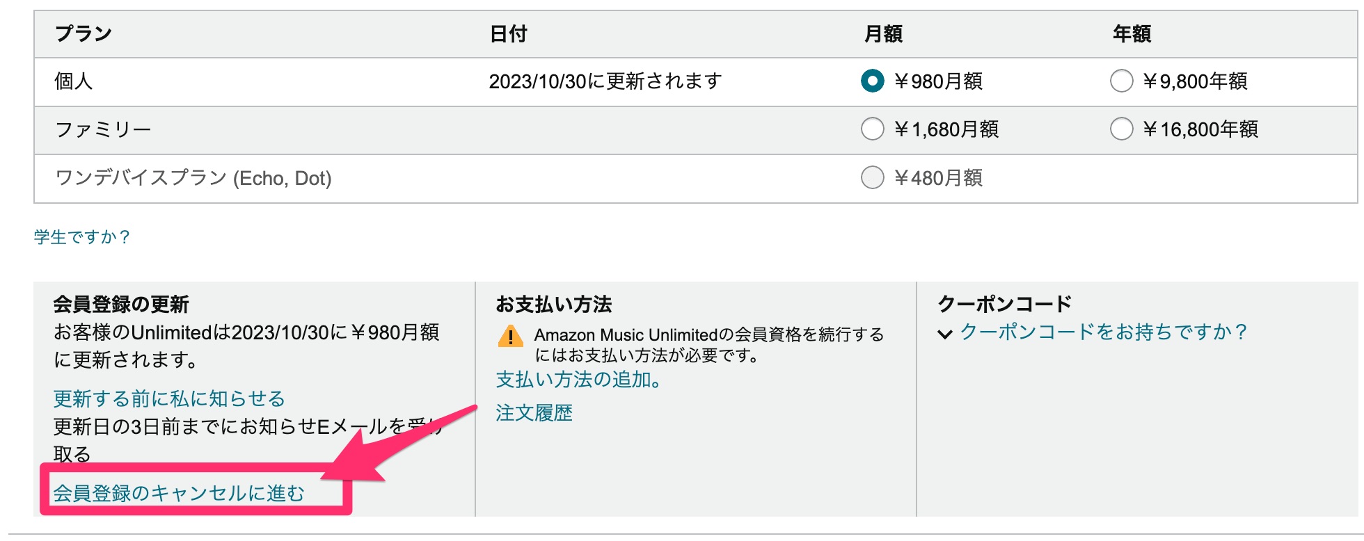 Amazon Music Unlimited の解約方法