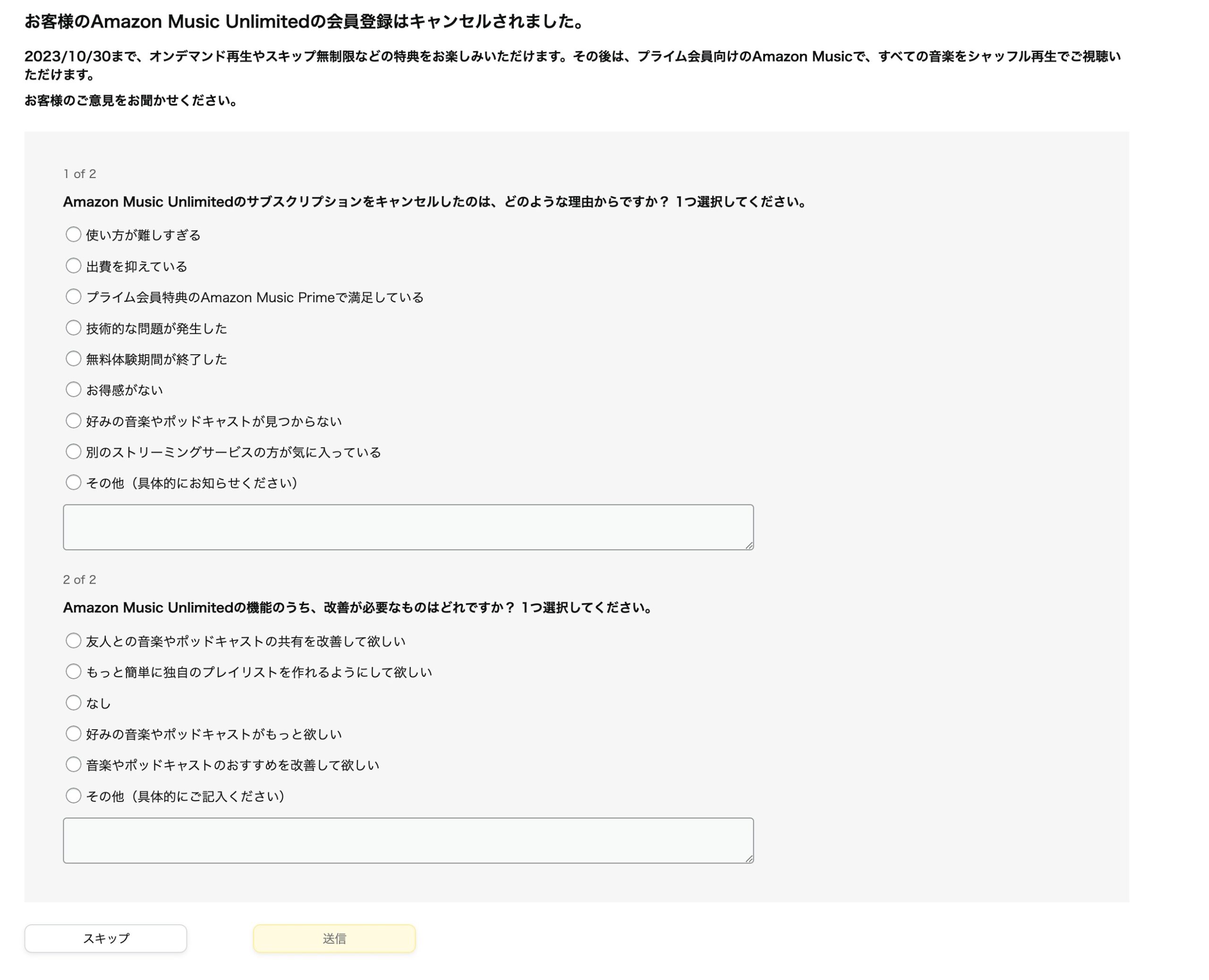 Amazon Music Unlimited の解約について