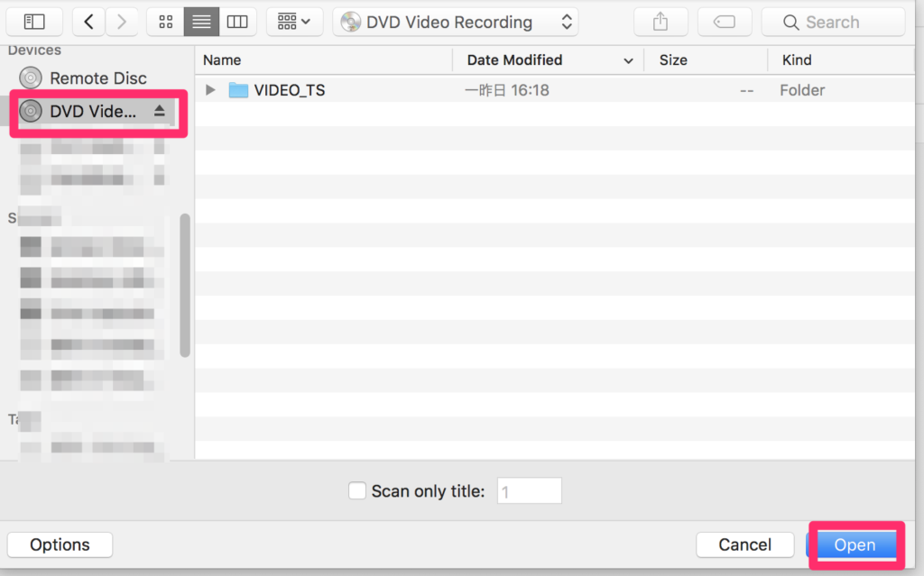 DVDの入っているドライブを選択して「OPEN」を押します。