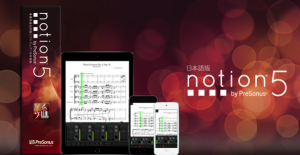[amazonjs asin=”B00TJZN5ZY” locale=”JP” title=”PreSonus プリソーナス 楽譜制作ソフト Notion 5 日本語版【国内正規品】”]