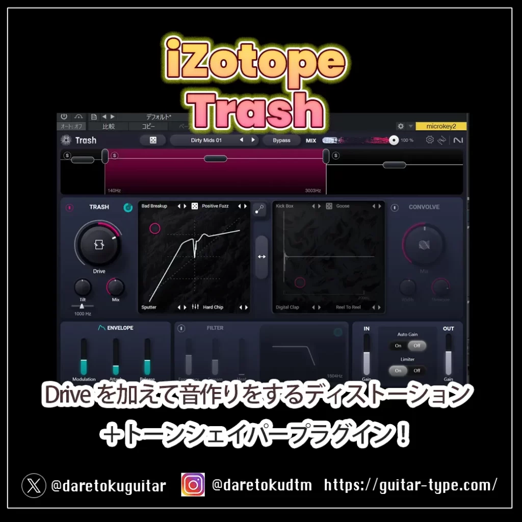 iZotope Trash がリニューアルして帰ってきました! こんな人におすすめ ・過激に歪ませたサウンドを作りたい人・アグレッシブなサウンドにしあげたい人 https://youtu.be/WtMbYjU0tmE?si=1e2KhBS49vaeIn1X 機能概要・ざっくり導入メリット Trash は、ドラ... -