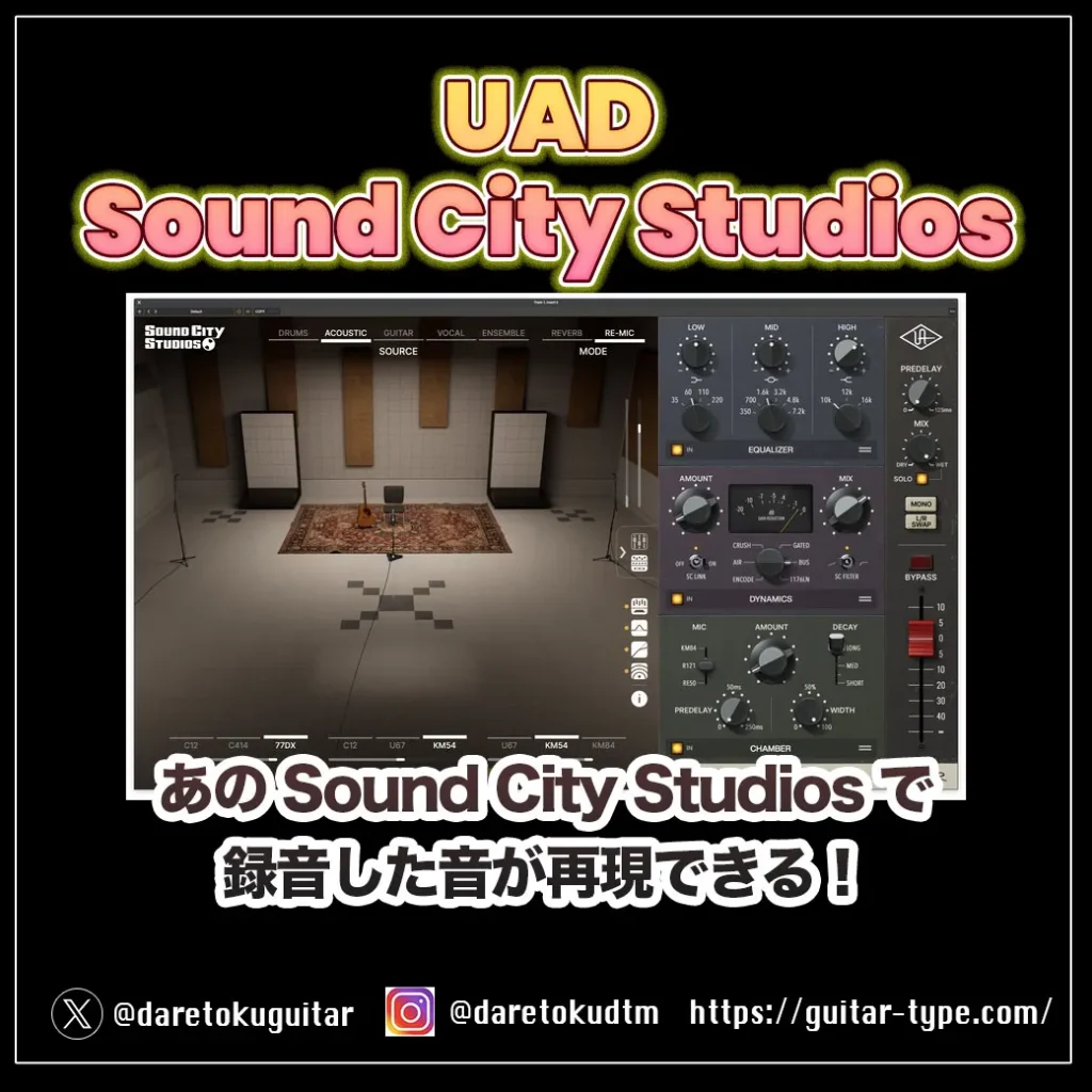 UAD Sound City Studiosとは? 「UAD Sound City Studios 」は名前そのまま、カリフォルニア州ロサンゼルスにあるレコーディングスタジオ「Sound City Studios」の環境をプラグインで再現したものです。 Sound City Studiosのロゴ 元々はイギリスのギター... -
