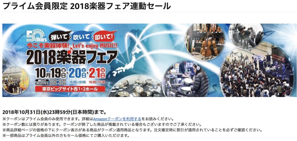 アマゾンでプライム会員限定の2018楽器フェア連動セール中!