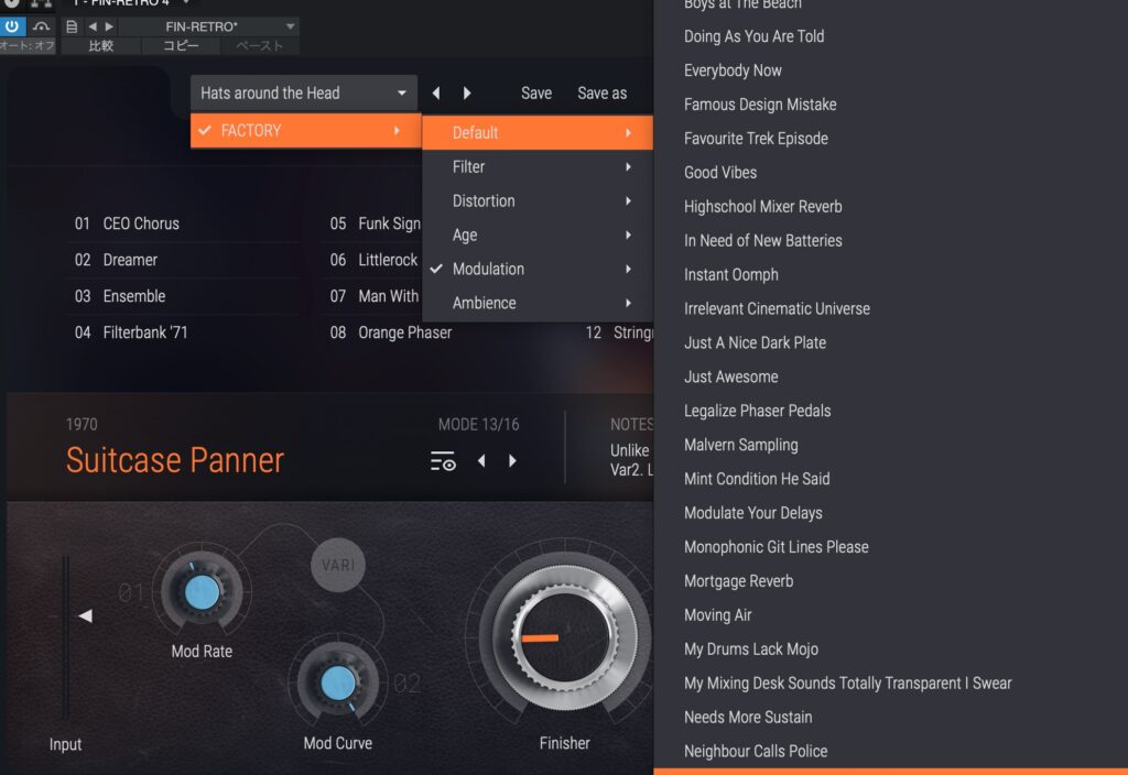 「ujam FINISHER RETRO」は60年代~90年代のアルバムで聞けるエフェクト音を簡単に再現できるマルチエフェクトプラグインです。