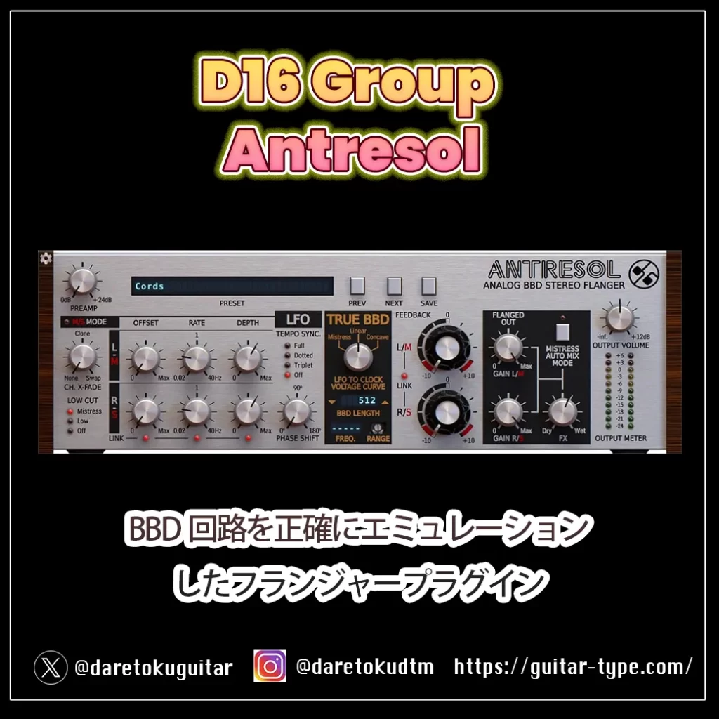 D16 Groupフランジャー「Antresol」セール!BBD回路を正確にエミュレーション