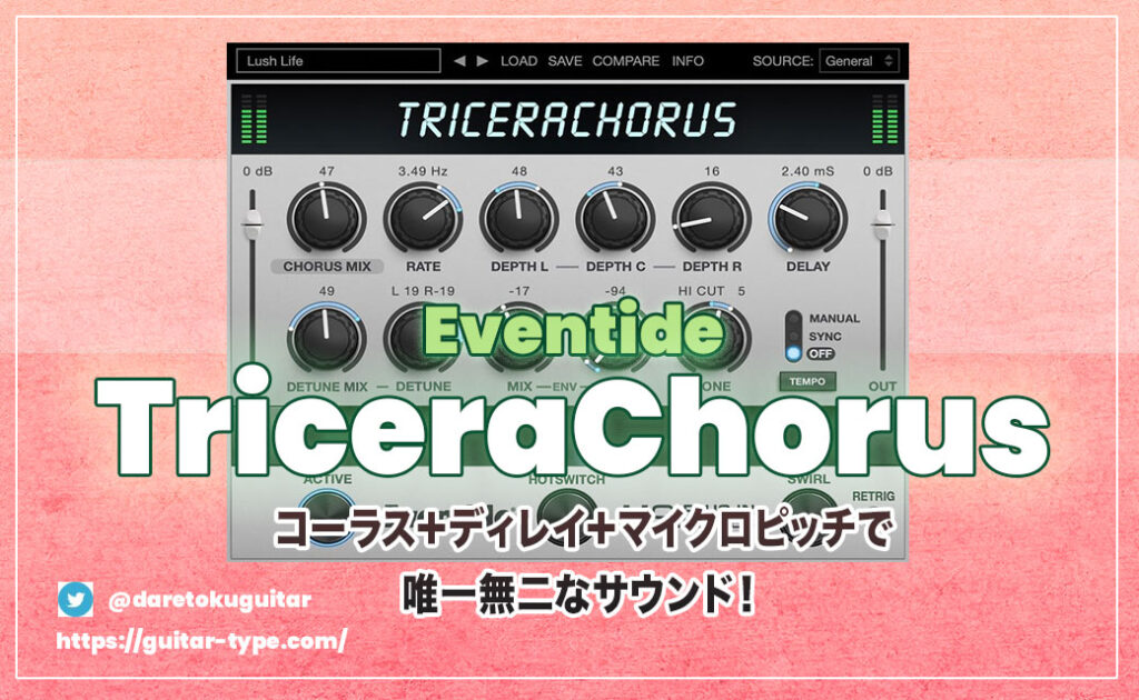 Eventide TriceraChorusはこんな人におすすめ Eventide TriceraChorusについて TriceraChorusはギタリストにはおなじみのメーカー「Eventide」のリバーブプラグイン。 Eventideの「実機ペダルエフェクターのH9」に収録されているエフェクトをPCで扱えるよ... -