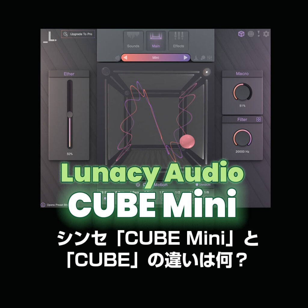 Lunacy.audioの次世代シンセ「CUBE」 この「CUBE」の入門版として「CUBE Mini」がリリースされています。 このページでは「CUBE Mini」と「CUBE」の違いについて解説してきます。 Lunacy audio CUBEとは 中央にある3Dインターフェイスの頂点にサンプルを... -