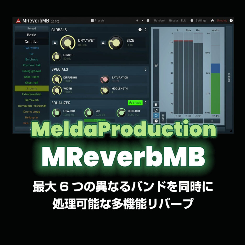 MeldaProduction MReverbMBはこんな人におすすめ MReverbMBはMeldaProductionのリバーブプラグイン 最大6つの異なるバンドを同時に処理できたりBasicとCreateiveのリバーブカテゴリが用意されていたりと、多機能なリバーブプラグインです。 MeldaProductio... -