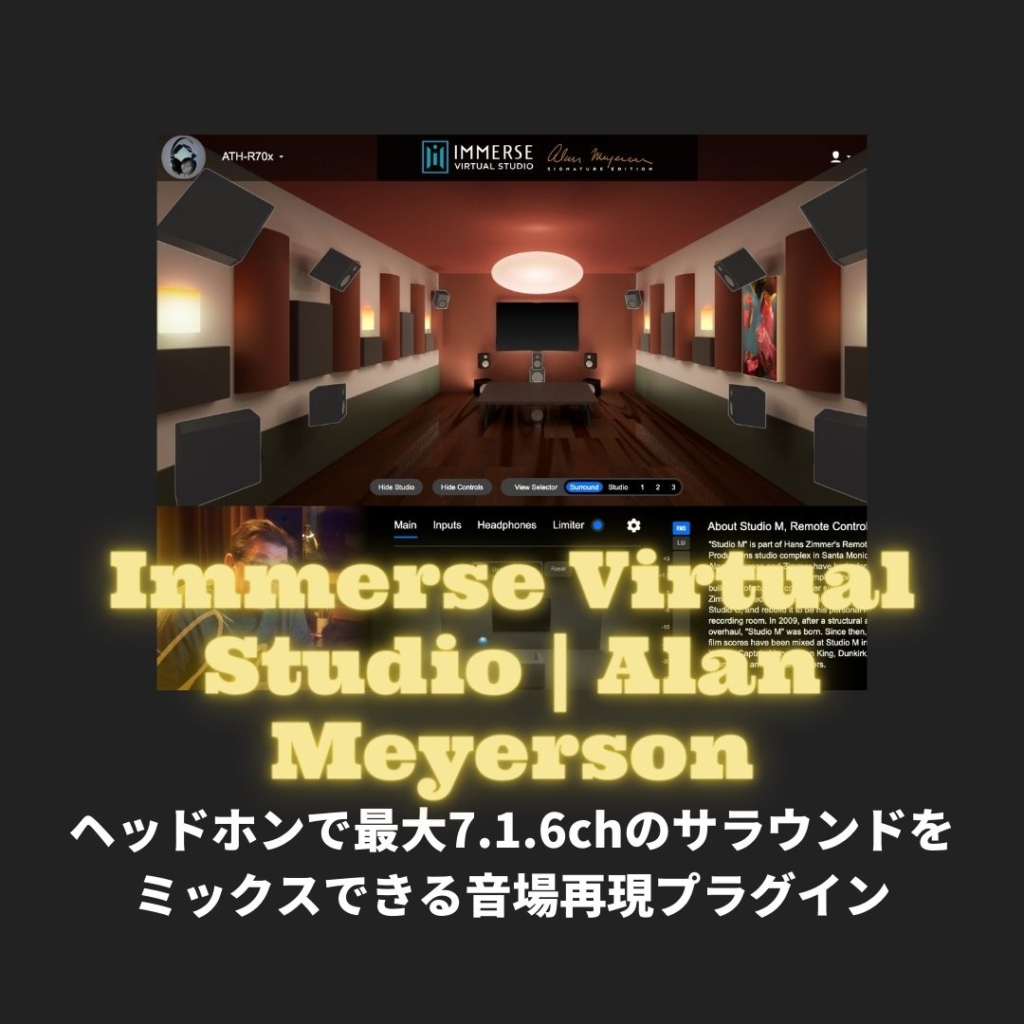 「Immerse Virtual Studio | Alan Meyerson」ヘッドホンで最大7.1.6chのサラウンドをミックスできる音場再現プラグイン
