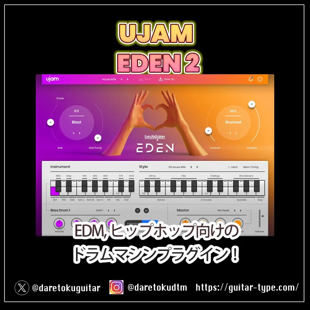 「UJAM EDEN 2」レビュー!EDM,ヒップホップ向けのドラムマシンプラグイン!