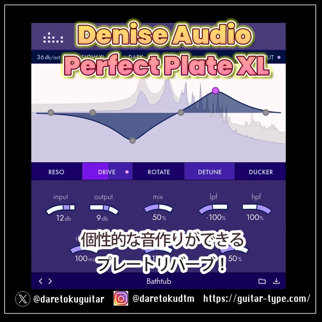 Denise Audio Perfect Plate XL はこんな人におすすめだ! Denise Audio Perfect Plate XL はこんなプラグイン! Denise Audio Perfect Plate XLはリバーブプラグイン! 定番のリバーブ音に飽きてしまった人は要チェックなリバーブです。 https://youtu.... -